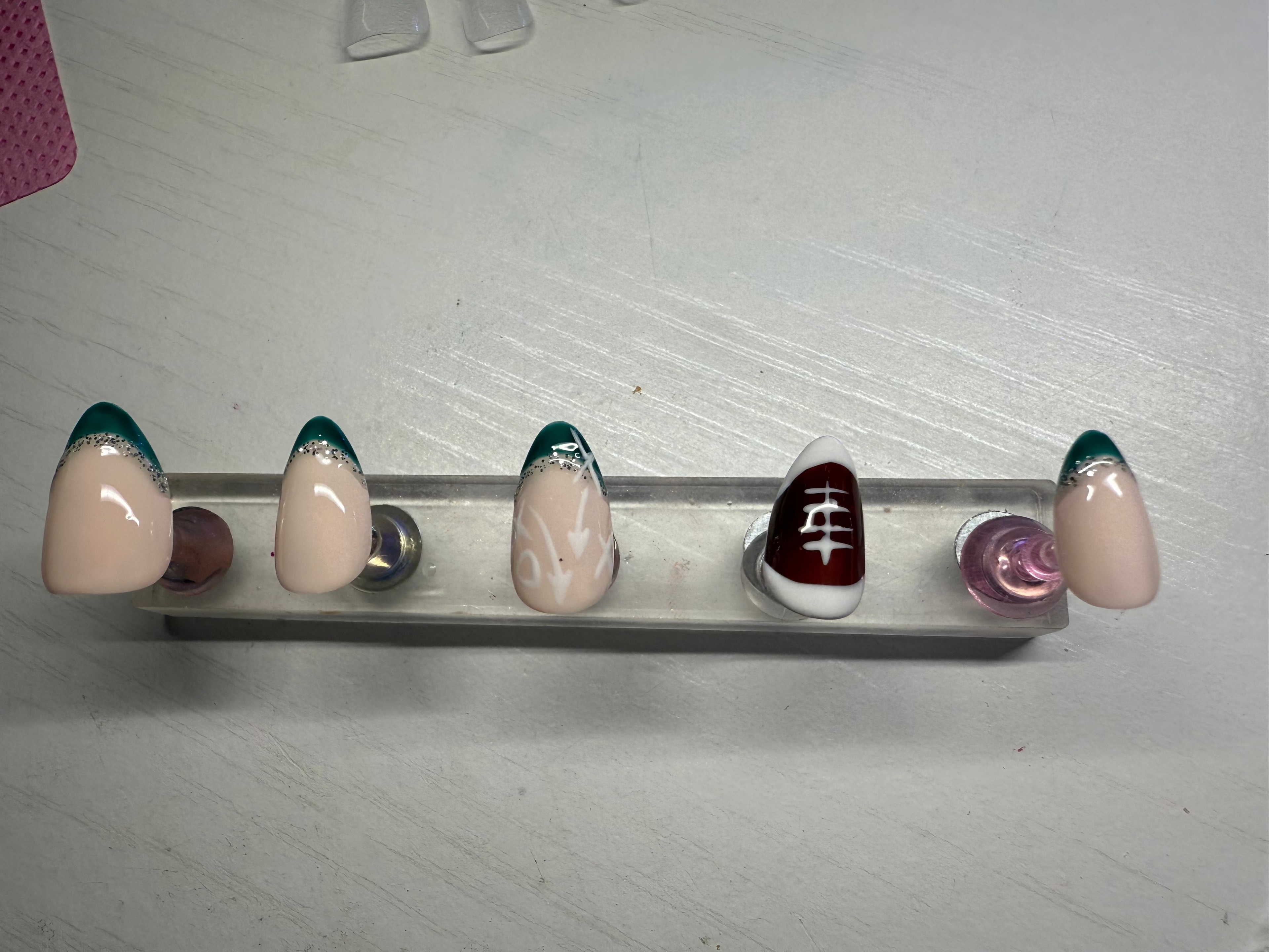 Once we have your design and sizes we’ll hand paint your custom press on set and send them straight to your door. Most sets range from $25-$35 depending on length and design.